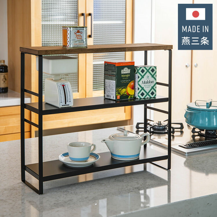 下村企販 日本製 燕三条 ラバーウッドキッチンラック 棚板2段 スリム カウンター上収納 ディスプレイラック 飾り棚 調味料ラック スパイスラック ステンレス キッチンラック