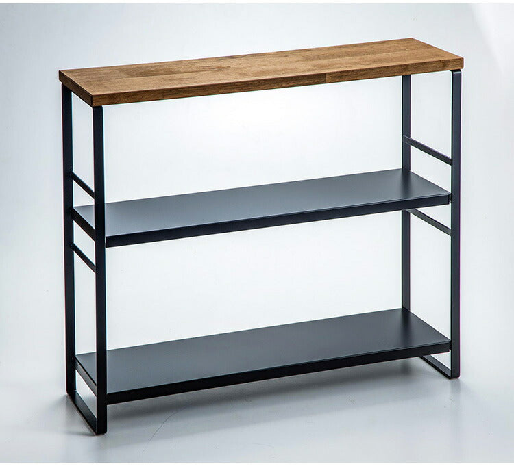 奥行15cmのスリムラック。キッチンでのスパイスやツール、コーヒーや紅茶の収納に。木目が美しいラバーウッドと黒色の組合せでシックな雰囲気です。みせる収納、ディスプレイとしての役割も果たしてくれます。玄関やリビング、デスク上での使用もおすすめです。