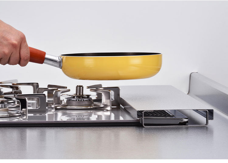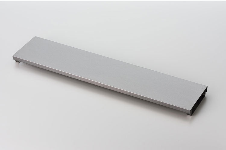 調理中の油や調味料のハネによる排気口汚れを防ぎます。薄型で見た目すっきり、キッチンに馴染みます。鍋、ケトル、フライパンなどの一時置きができます。細かな凹凸がある表面仕上げで傷や指紋が目立ちにくいです。※魚焼きグリル使用時は取り外してください。