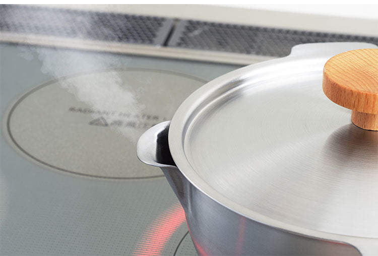 蓋は鍋のラインに添わせた形状です。スライドさせて、