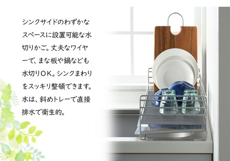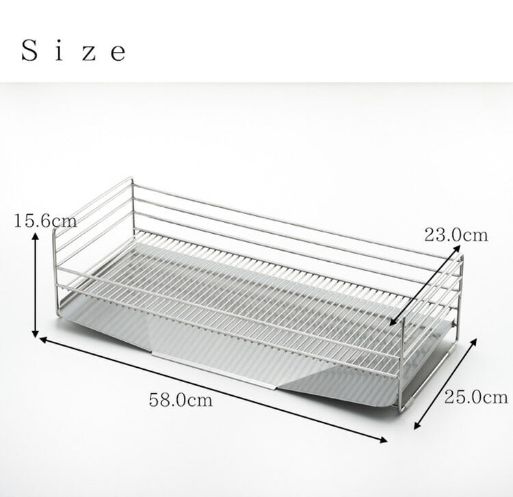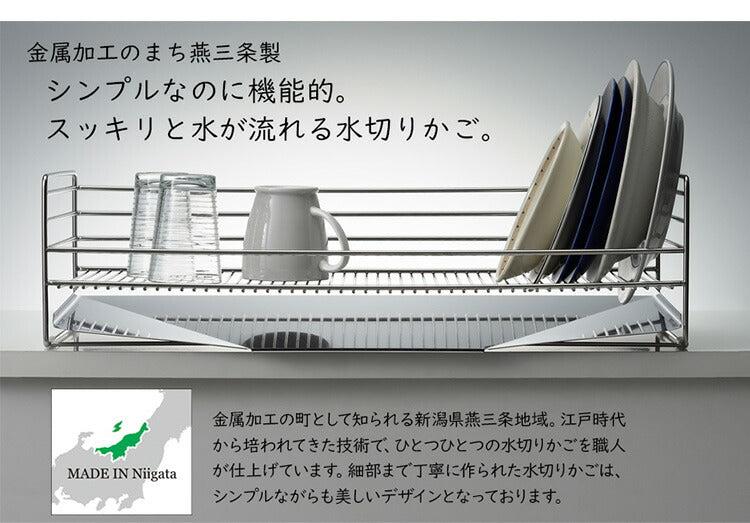 ヨシカワ 日本製 水の流れる頑丈クロスレス水切り 幅25.0cm×奥行58cm ステンレス製 燕三条 水切りカゴ 水切りかご 水切りラック 水が流れるトレー Yoshikawa 1306156