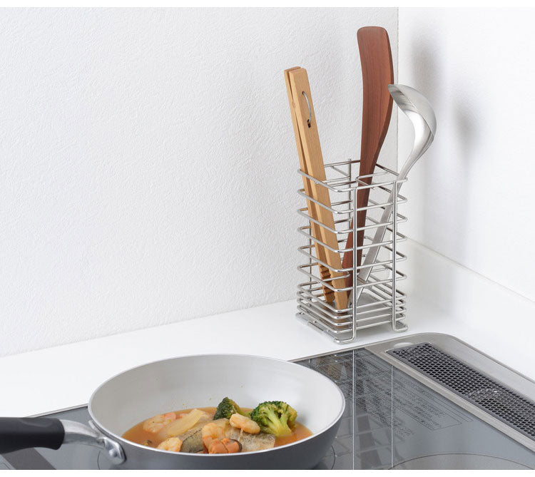 ヨシカワ 日本製 燕三条 Hi! ツールスタンド 仕切り付き カトラリースタンド ステンレス製 隅に置けるスクエア型 四角 ぴったり置けるしかくいツールスタンド キッチン収納 Yoshikawa シンプル