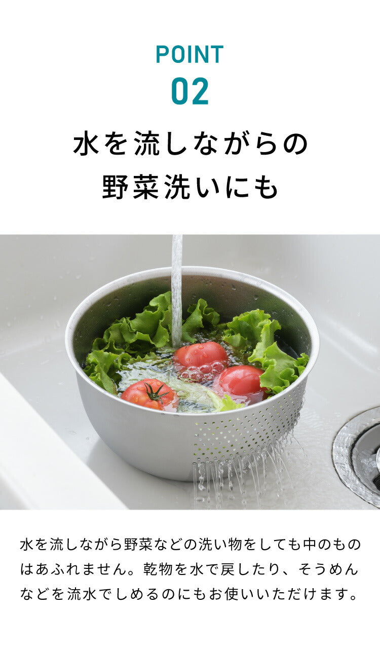 お米はもちろん、麺の湯切りに野菜洗いでも活躍。