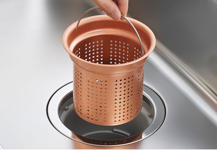 日本製 燕三条 純銅製 ゴミ受け 深型 流し用 シンク 排水口 ごみ受け 13.5cm 抗菌 ぬめり ヌメリ 対策 悪臭防止 ゴミポケット ごみポケット かご カゴ バスケット 排水溝