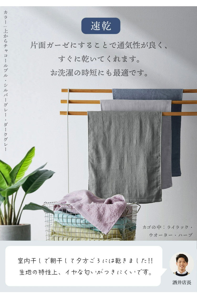 表ガーゼ裏パイルになっており、一般的なガーゼタオルよりも吸水性が高い。