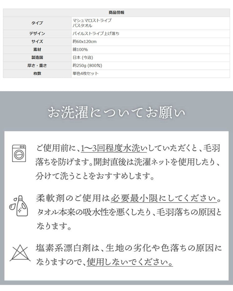 マシュマロストライプバスタオル 今治タオル バスタオル 4枚セット 全9色 中厚 ベビー 赤ちゃん かわいい 60×120cm 綿100% 日本製 今治タオル 無地 吸水 マシュマロストライプ(代引不可)