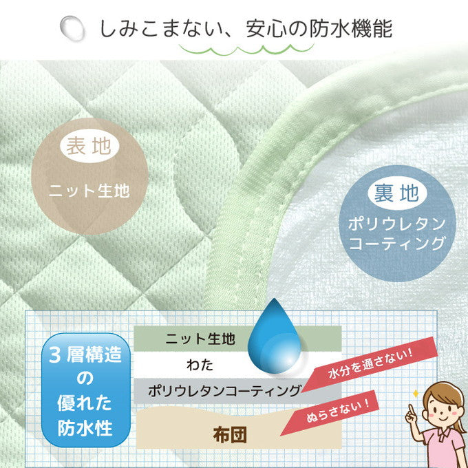 防水敷きパッド シングル 100×205cm 無地 介護ヘルパーお勧め ニット地 介護用 お子さまに ペットに 四隅強化ゴム付 電気毛布 あんか OK 抗菌防臭 ベッド シーツ 寝具