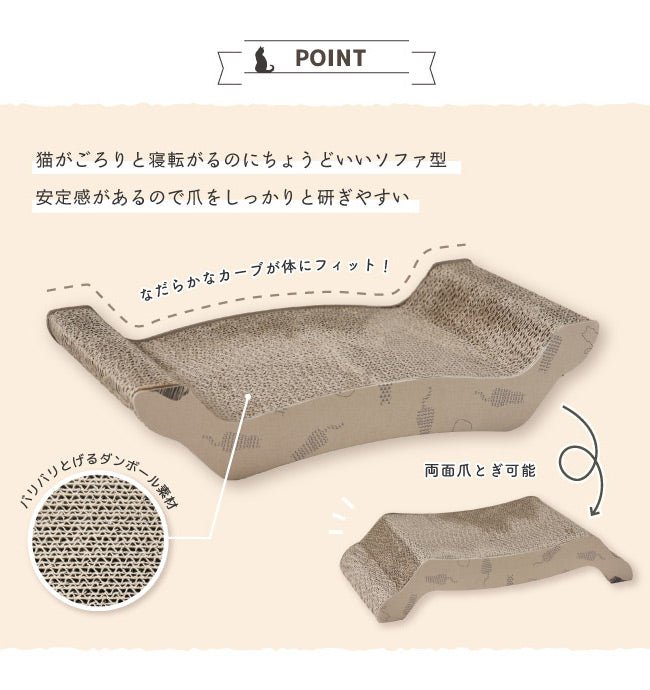 爪とぎはもちろん、寝転ぶこともできるソファ型です