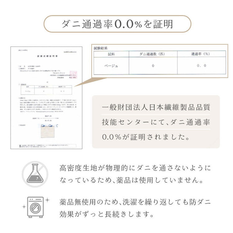 ダニが通過できない高密度の生地 薬剤を使うことなくダニを防ぎます