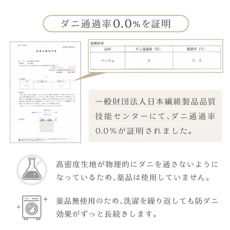 ダニが通過できない高密度の生地 薬剤を使うことなくダニを防ぎます