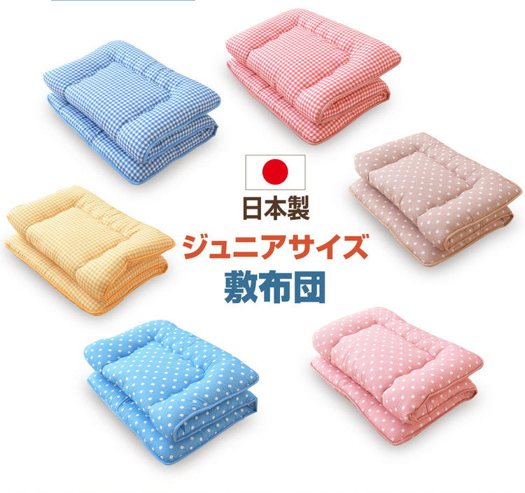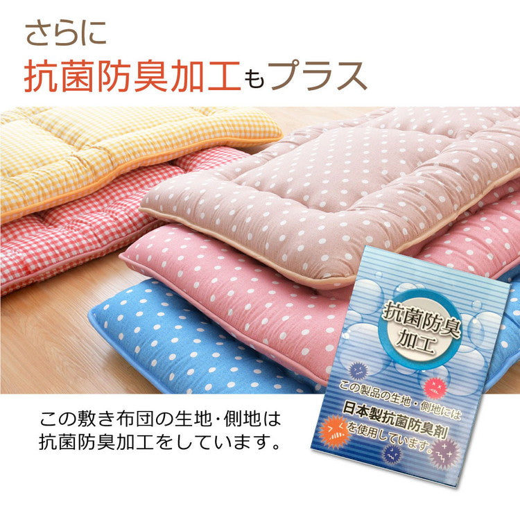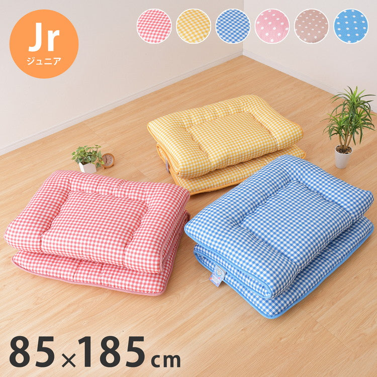 日本製 色柄 敷布団 ジュニア 約85×185cm 抗菌防臭加工 固くわた入り 三層構造 選べる6種 ドット ちぇく 軽量 コンパクト 国産 持ち運び簡単 ほこりの出にくい 来客用 一人暮らし ワンルーム 新生活(代引不可)