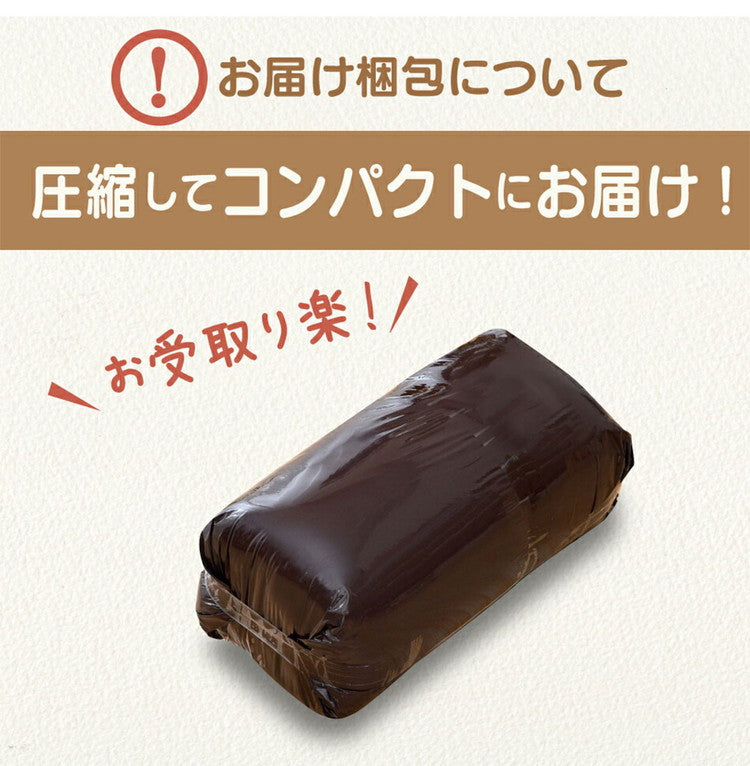 布団は圧縮梱包でコンパクトにお届けします。開封するとボリュームが戻ります。