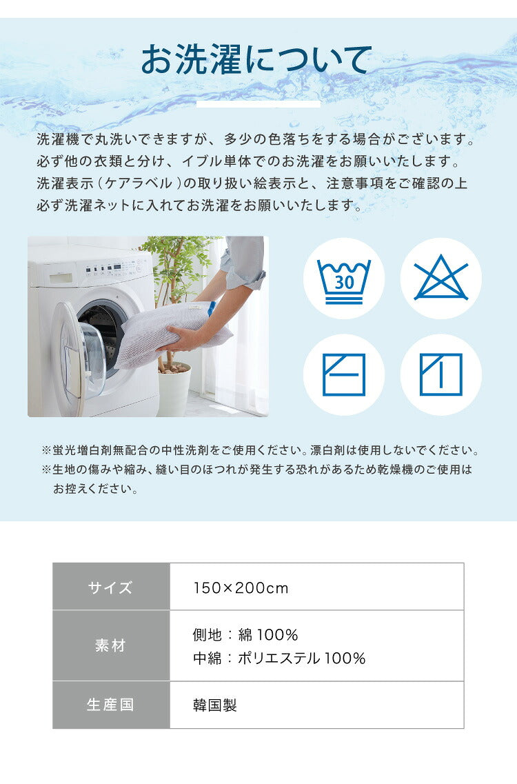 ※洗濯機で丸洗いできますが、多少の色落ちをする場合がございます。必ず他の衣類と分け、イブル単体でのお洗濯をお願いします。