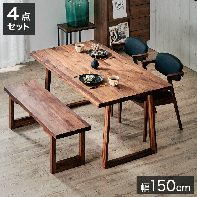 ダイニングセット 4人掛け 4点セット 幅150 ウォールナット無垢材 ベンチ ダイニングテーブルセット 合皮 天然木 ダイニングチェア 食卓 テーブル 椅子 いす(代引不可)