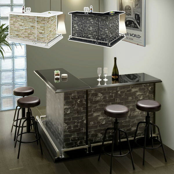 バーカウンター テーブル L字 完成品 高さ85 カウンターテーブル 2点セット 幅120 幅100 カウンター下収納 黒 白 エナメル塗装 鏡面 間仕切り 北欧 韓国インテリア おしゃれ(代引不可)