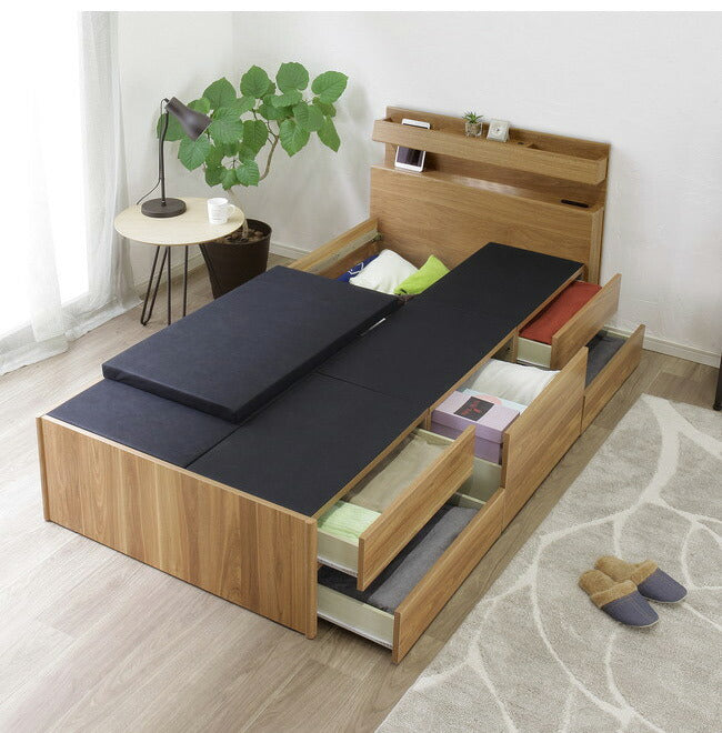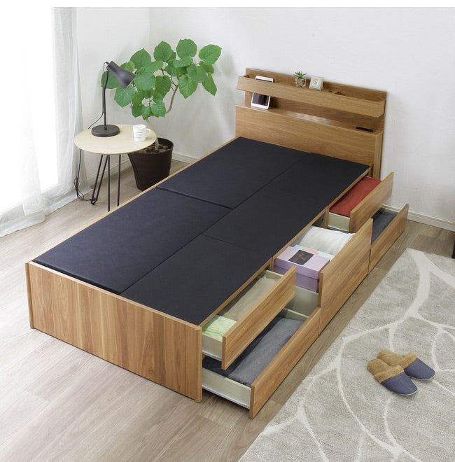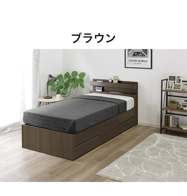 ベッドフレーム S シングル 幅98cm 奥行209cm チェストベッド 2口コンセント付き LEDライト付き 引き出し付き 収納 スライドレール ヘッドボード 収納ベッド おしゃれ(代引不可)