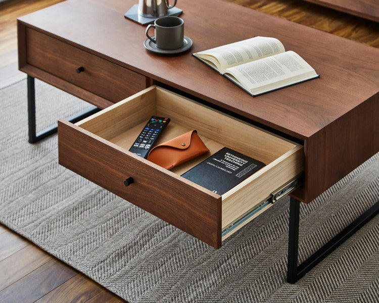 センターテーブル 幅120cm 長方形 コーヒーテーブル タモ ウォールナット 天然木 木製 木目調 スチール ローテーブル 収納付き 引き出し付き コンパクト おしゃれ 北欧 一人暮らし 新生活(代引不可)