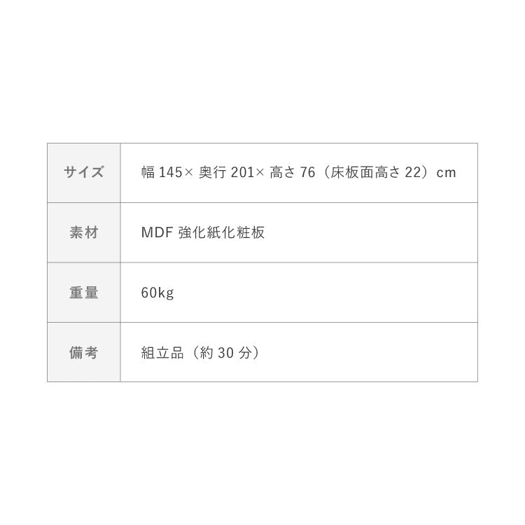 幅145×奥行201×高さ76(床板面高さ22)cm