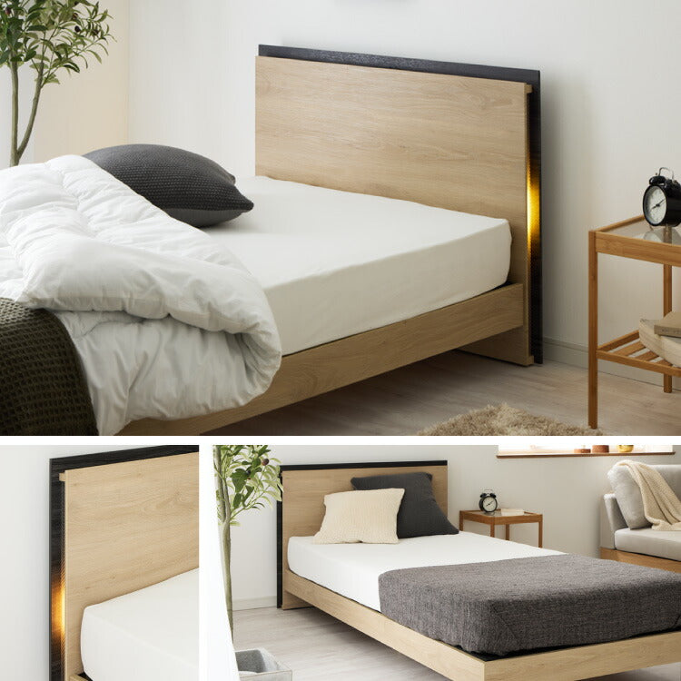 ベッドフレーム単品 ダブルサイズ 幅145cm LEDライト付き コンセント1口付き グレー フレーム 収納 スペース 家具 インテリア(代引不可)