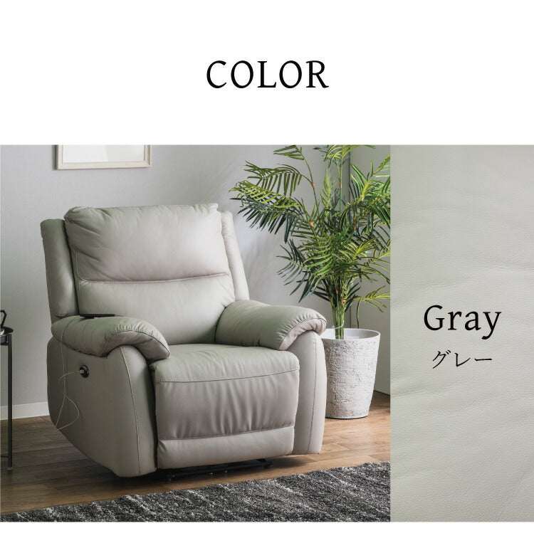 ソファ 電動リクライニングソファ 本革 モダン おしゃれ 幅98 奥行92~152 スマホ充電 フットレスト一体型 レザーソファ モーションソファ パーソナルチェア 1人掛け 1人用 電動 ブラウン グレー sofa(代引不可)