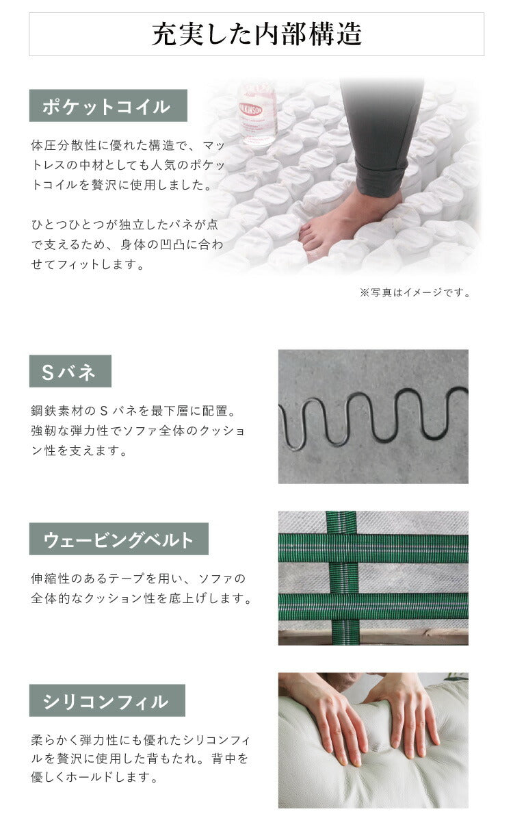 座面中材:ポケットコイル/Sバネ/ウレタンフォーム