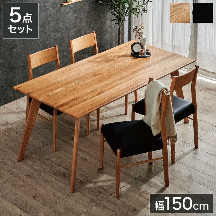 ダイニングセット 4人掛け 5点セット オーク無垢材 ダイニングテーブルセット 幅150 合皮 天然木 ダイニングチェア 食卓 テーブル 椅子 いす(代引不可)