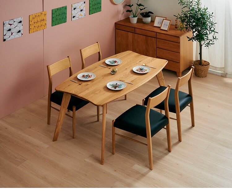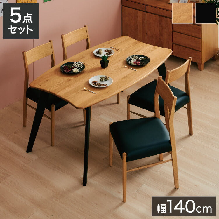ダイニングセット 4人掛け 5点セット オーク無垢材 ダイニングテーブルセット 幅140 合皮 天然木 ダイニングチェア 食卓 テーブル 椅子 いす(代引不可)