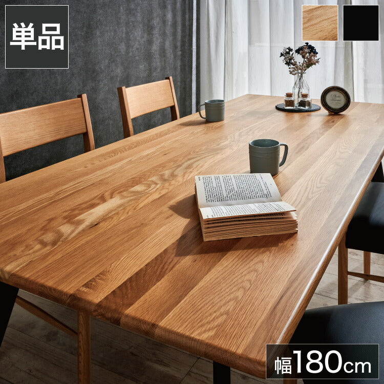 ダイニングテーブル 単品 幅180 オーク無垢材 ブラック ナチュラル 6人掛け リビング テーブル ダイニング おしゃれ 北欧 モダン 食卓 テーブル 天然木(代引不可)