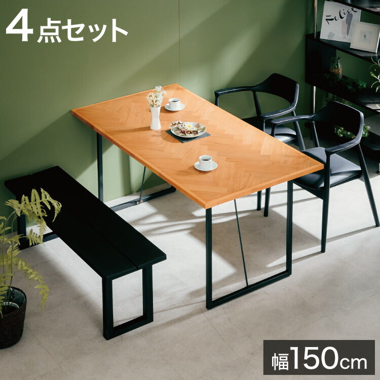 ダイニングセット 4人掛け 4点セット 幅150 ヘリンボーン オーク アッシュ無垢材 ダイニングテーブルセット 合皮 天然木 ダイニングチェア 食卓 テーブル 椅子 いす(代引不可)