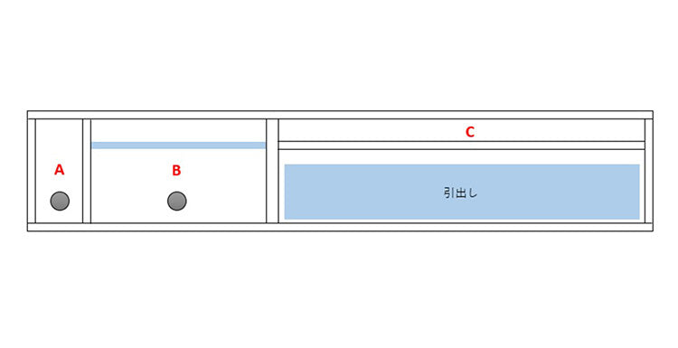 [扉内寸]A=約幅11.5×奥行36×高さ28cm / B=約幅42×奥行36×高さ28cm / C=約幅86×奥行36×高さ7.5cm