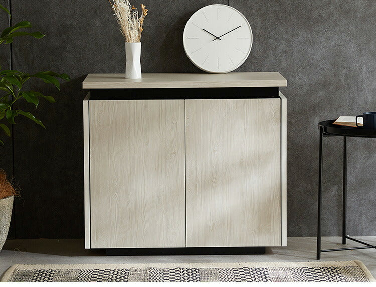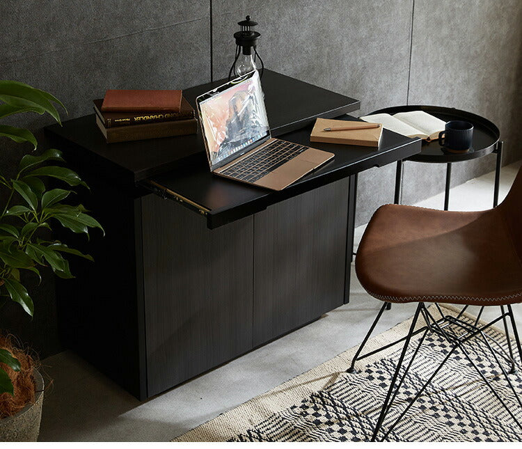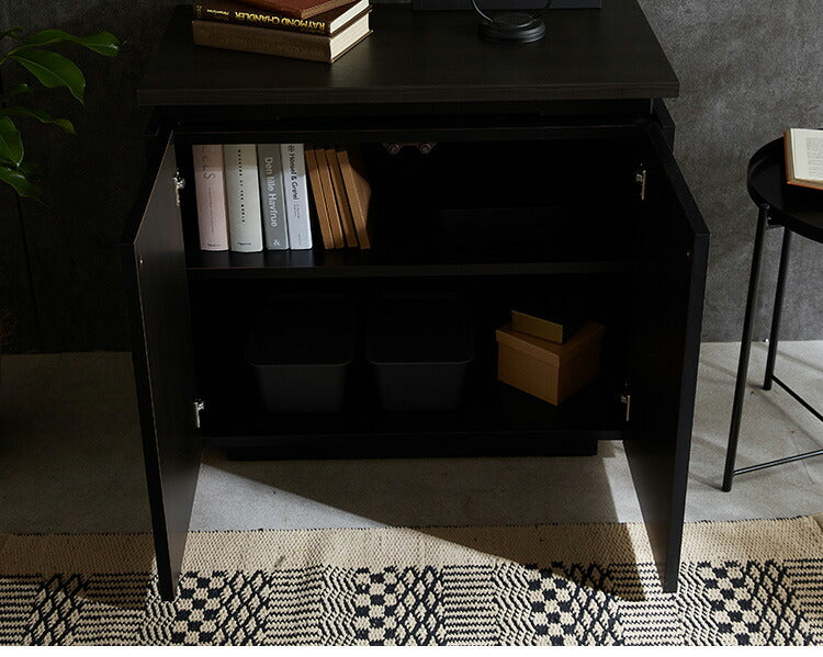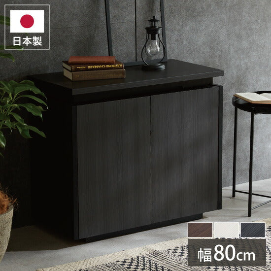 サイドボード キャビネット 幅80 奥行40 高さ70 完成品 ライティングビューロー おしゃれ 国産 スライドレール 白 ホワイト ブラック 木目 木製(代引不可)