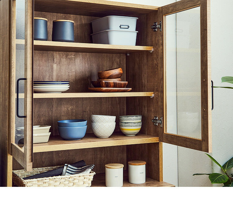 食器棚 幅80cm キッチンボード 木目調 日本製 完成品 キッチン収納 北欧 おしゃれ キッチンラック ダイニングボード シンプル 収納家具(代引不可)