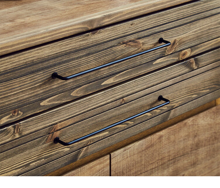 ・上二段引出前板は節有りパイン無垢材を使用しうづくり仕上げをしております。