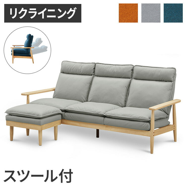 リクライニングソファ スツール1個付き 幅181cm ソファ おしゃれ 木製 北欧 リクライニング リクライニングソファ 6段階調整可能 木肘ソファ カフェ 無垢材 ナチュラル 広め ファブリック(代引不可)
