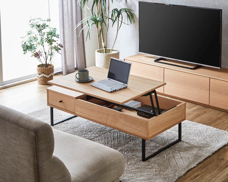リビングテーブル 幅120cm 昇降テーブル ローテーブル リフティングテーブル 天然木 センターテーブル PCデスク コンパクト テレワーク 在宅ワーク おしゃれ 北欧 シンプル モダン 天板昇降(代引不可)