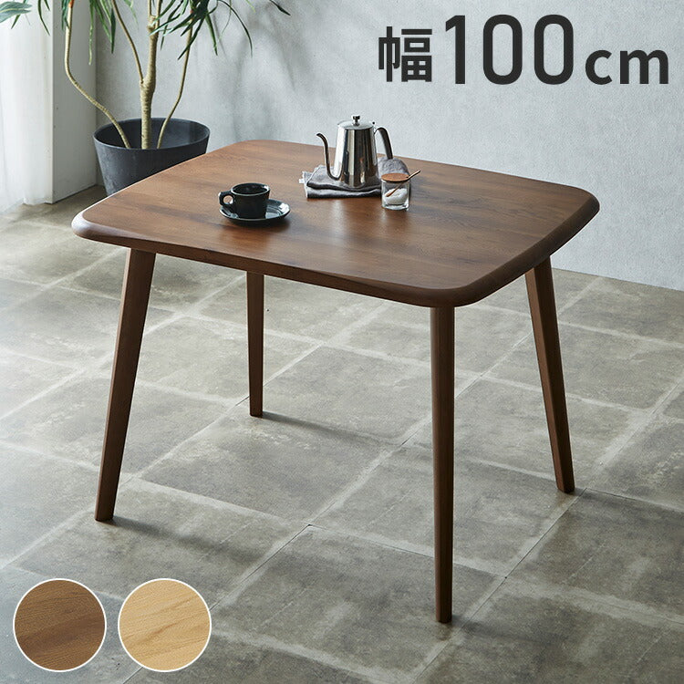 ダイニングテーブル 幅100cm 北欧スタイル コンパクト 無垢集成材 ウォールナット オーク 角丸長方形 4本脚 ウレタン塗装 食卓テーブル 天然木 ナチュラル シンプル モダン 北欧 おしゃれ(代引不可)