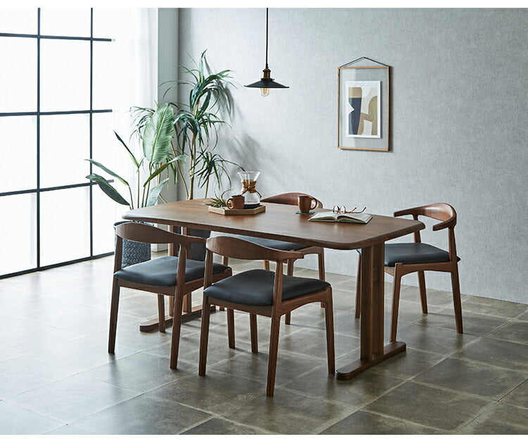 ダイニングテーブル 幅165cm 北欧スタイル コンパクト 無垢集成材 ウォールナット オーク 角丸長方形 T脚 ウレタン塗装 食卓テーブル 天然木 ナチュラル シンプル モダン 北欧 おしゃれ(代引不可)