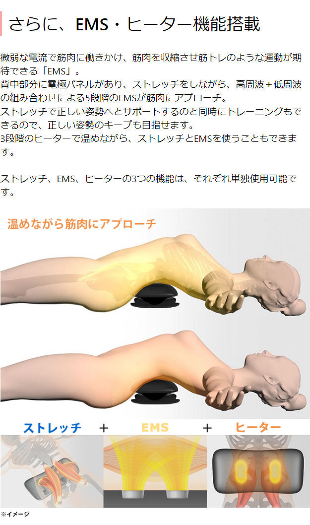 本格シェイプアップを後押しするエアバッグとEMS、ヒーターをすべて搭載。