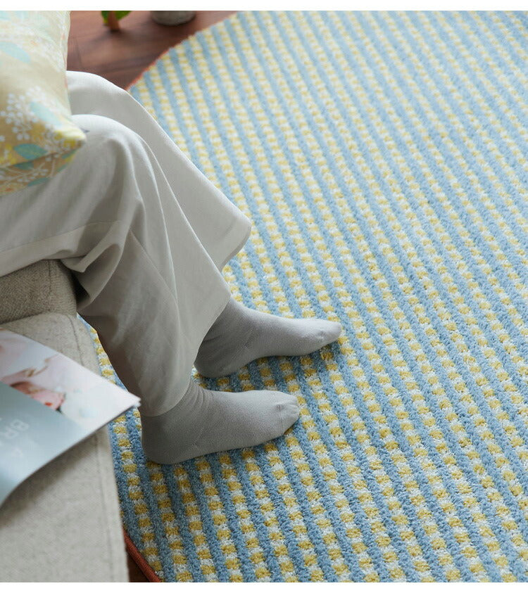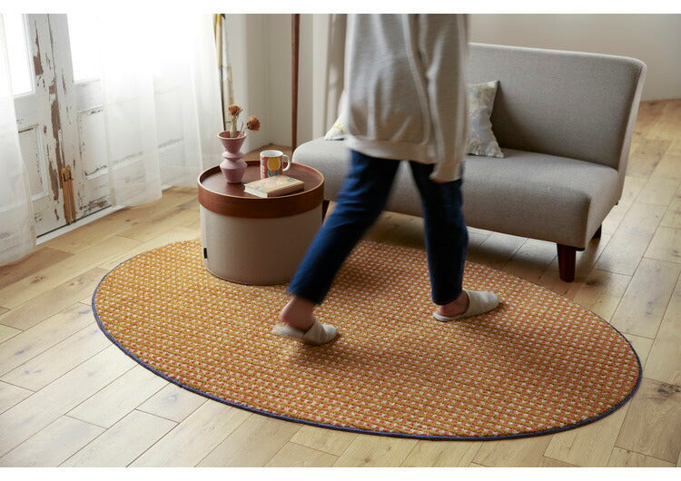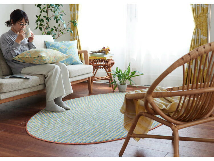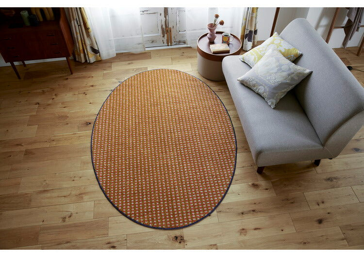 ラグ 130×185cm 楕円 ウォッシャブル 日本製 ドライクリーニング メディカルストップ 耐熱 F☆☆☆☆ おしゃれ 北欧 かわいい 丸形 リビング DESIGN LIFE RETORO CHECK RUG レトロチェックラグ(代引不可)