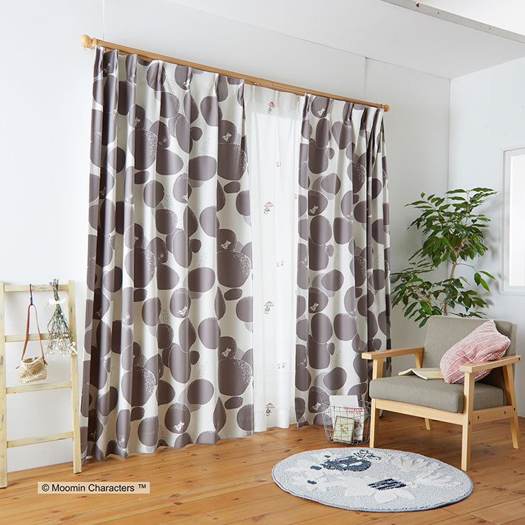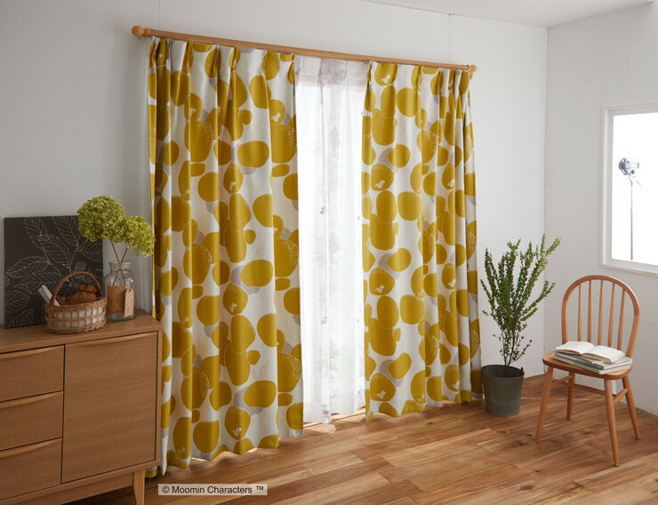 カーテン 日本製 ムーミン MOOMIN ROCK PATTERN ロックパターン 2級遮光 ウォッシャブル ダークグレー イエロー 1枚入(代引不可)