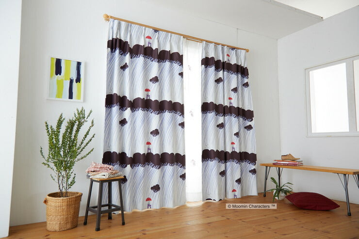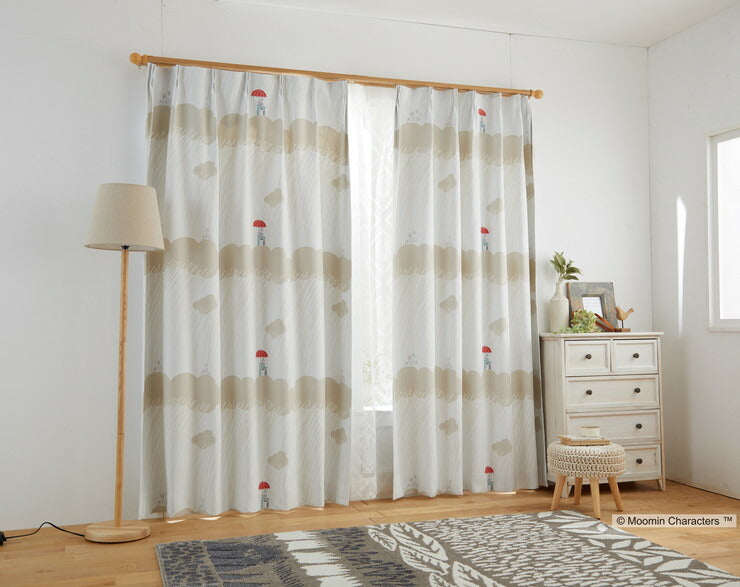 カーテン 日本製 ムーミン MOOMIN RAIN DROPS レインドロップス 2級遮光 ウォッシャブル ブラック ブルー ベージュ 1枚入(代引不可)