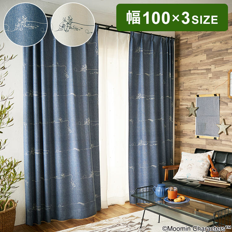 1級遮光カーテン 日本製 ムーミン MOOMIN DENIM BORDER デニムボーダー 1枚入 ウォッシャブル 洗える 形状記憶加工 北欧 おしゃれ(代引不可)