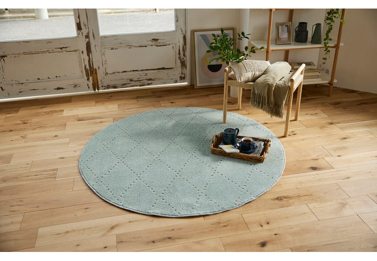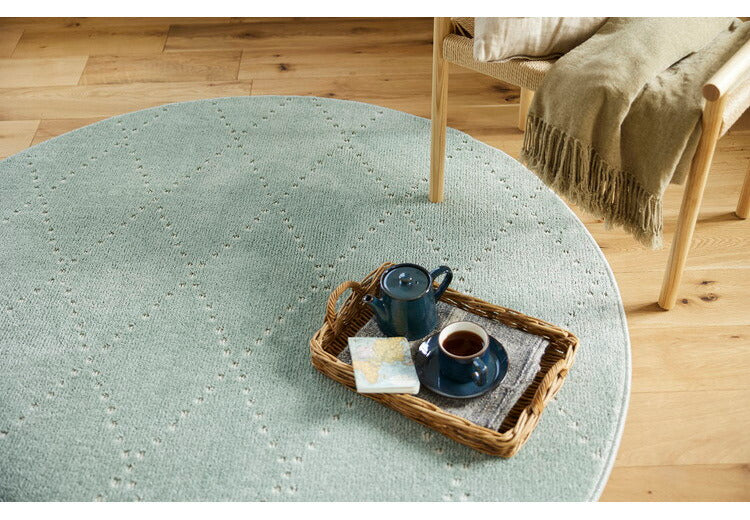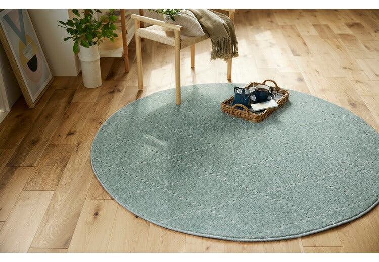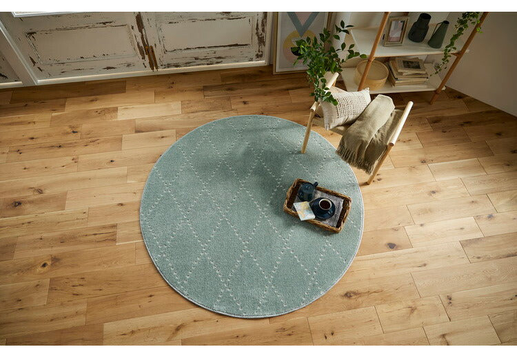 日本製 ラグ 円形 直径150cm 丸 滑り止め ポント モロッカン模様 アクセント カラーライン タフトラグ ベージュ グリーン ブルーグレー 国産 スミノエ Suminoe 北欧(代引不可)