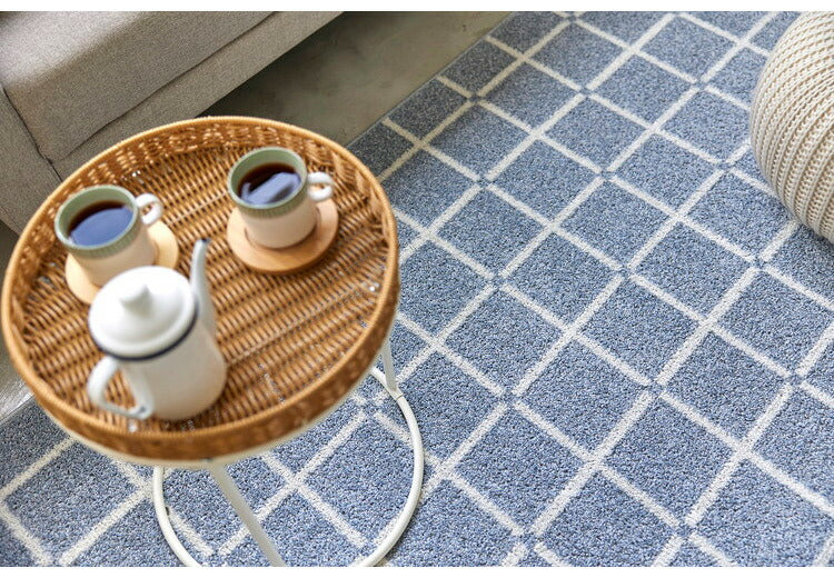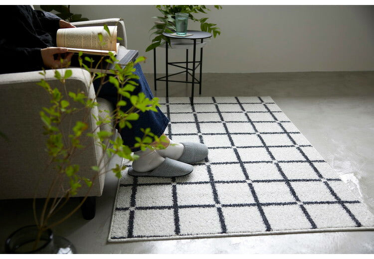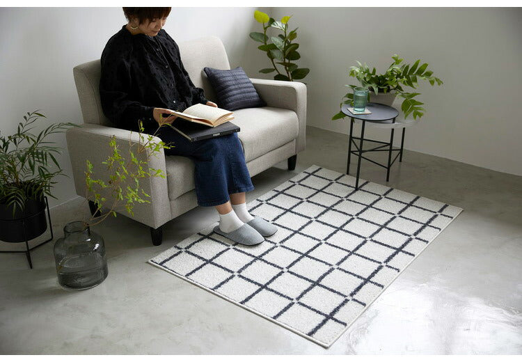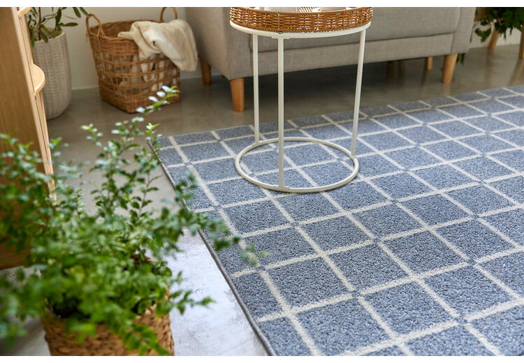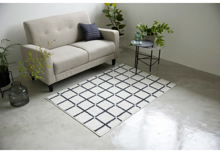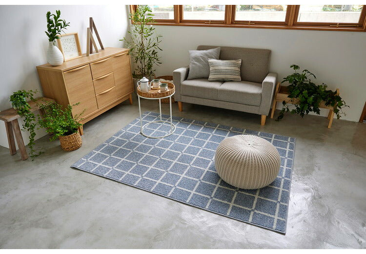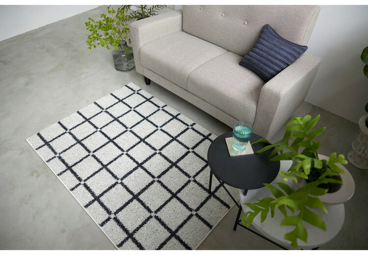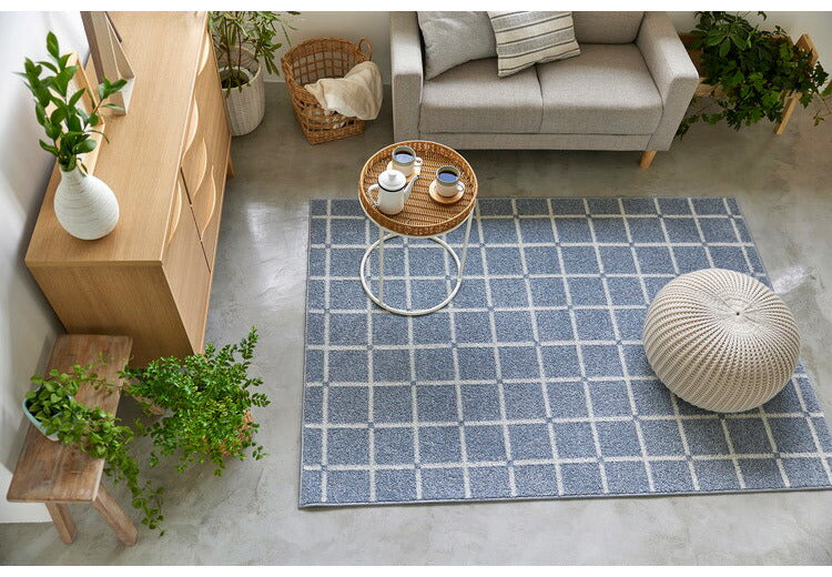日本製 ラグ 130×185cm 滑り止め オセロ チェック柄 カラーライン タフトラグ ブルー オレンジ ホワイト 国産 スミノエ Suminoe 北欧 モダン シンプル おしゃれ(代引不可)