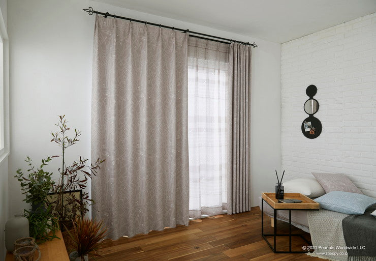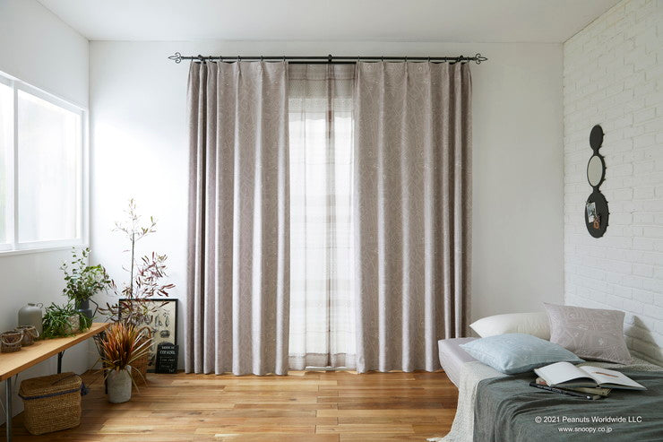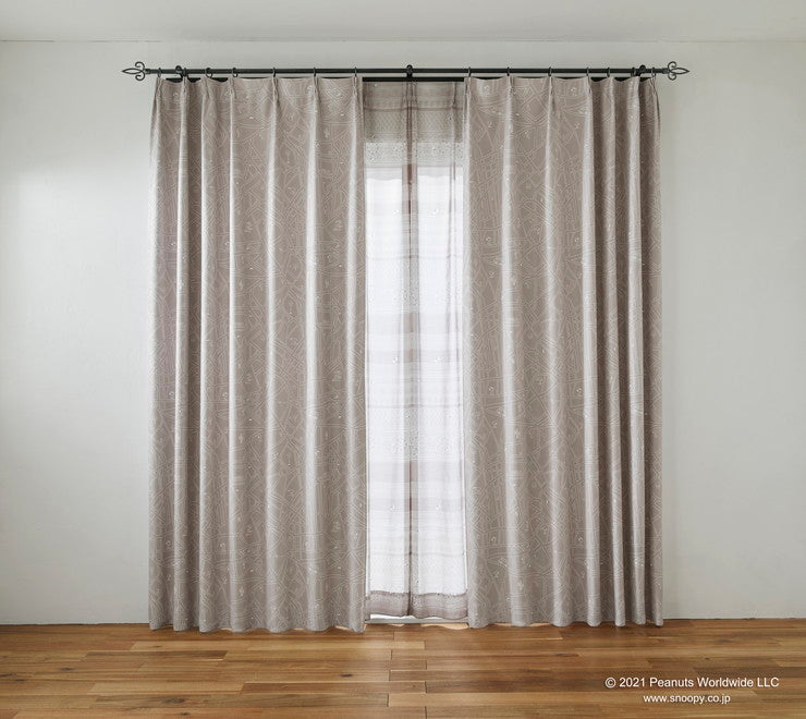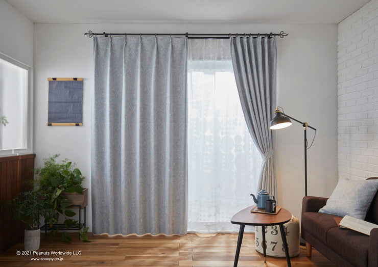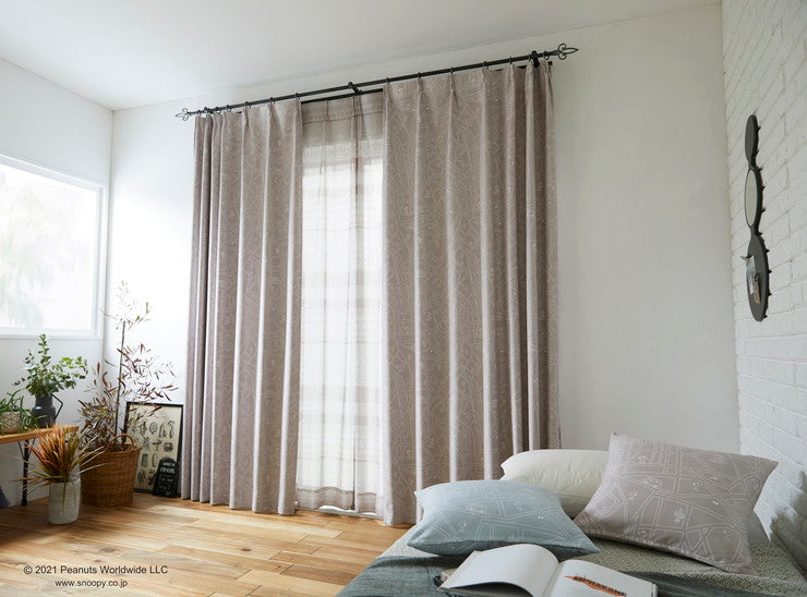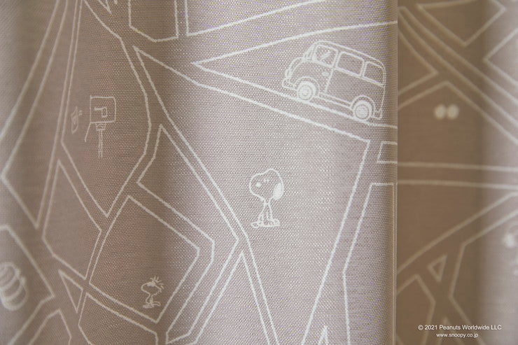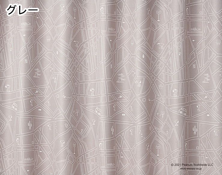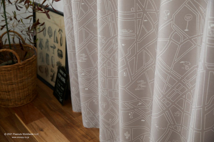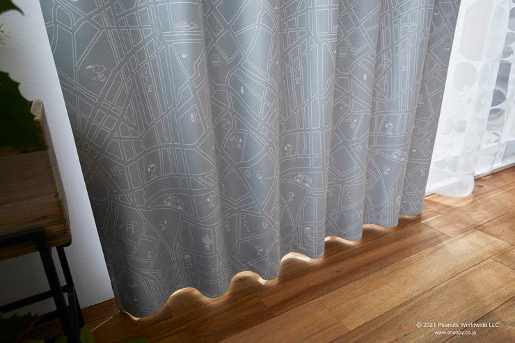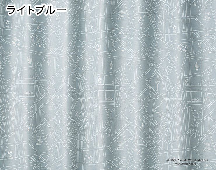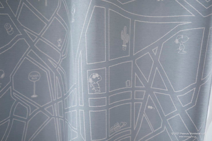 カーテン、日本製、国産、幅100cm、1枚入、スヌーピー、SNOOPY、City、Scape、シティースケープ、PEANUTS、ピーナッツ、2級遮光、ウォッシャブル、洗える、形状記憶加工、北欧、おしゃれ、キャラクター、ドレープカーテン