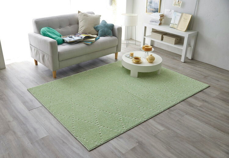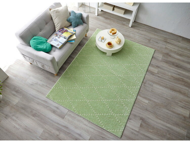 日本製 ラグ 130×185cm 滑り止め ポント モロッカン模様 アクセント カラーライン タフトラグ ベージュ グリーン ブルーグレー 国産 スミノエ Suminoe 北欧 モダン(代引不可)