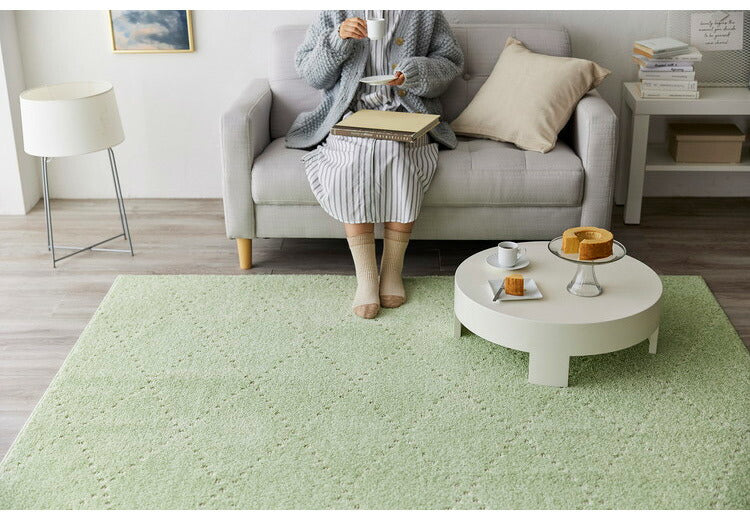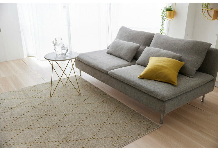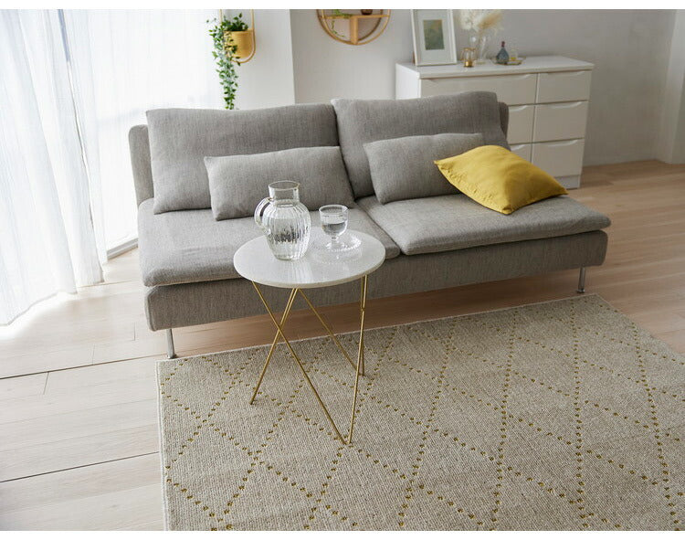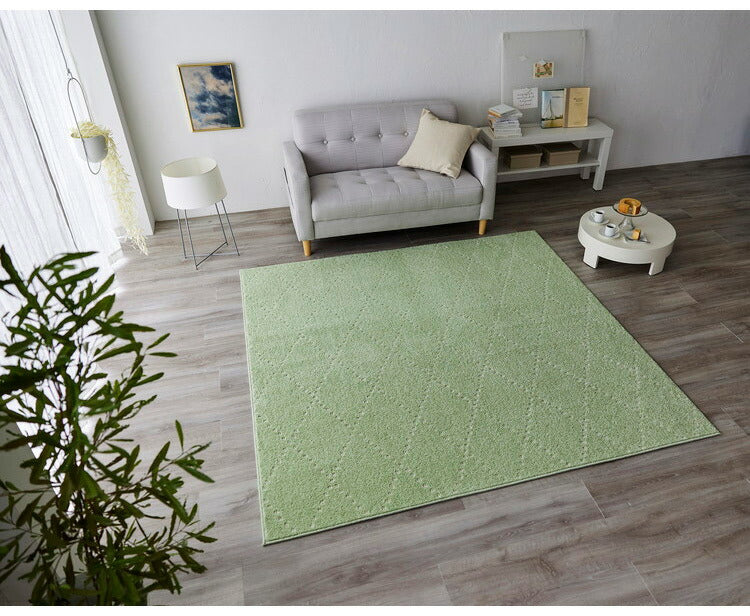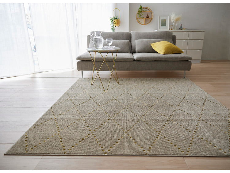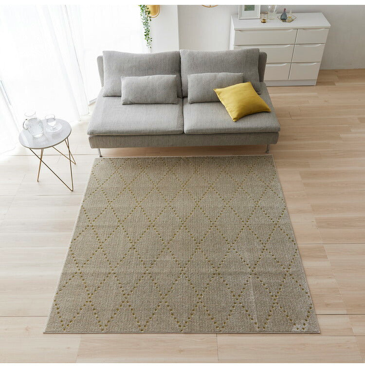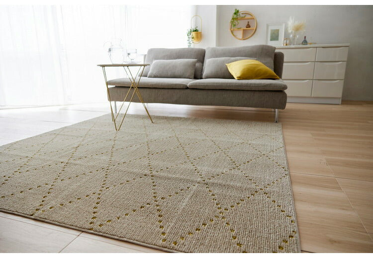 日本製 ラグ 185×185cm 滑り止め ポント モロッカン模様 アクセント カラーライン タフトラグ ベージュ グリーン ブルーグレー 国産 スミノエ Suminoe 北欧 モダン(代引不可)
