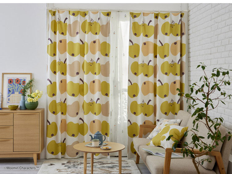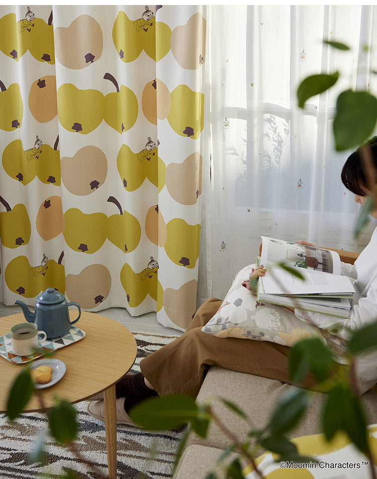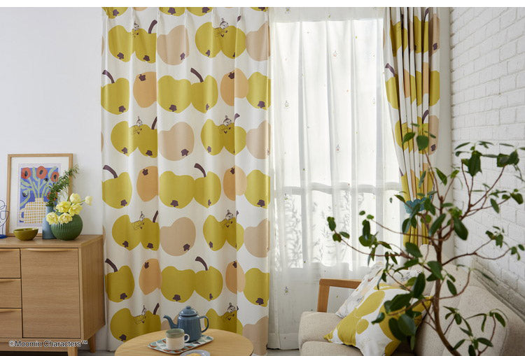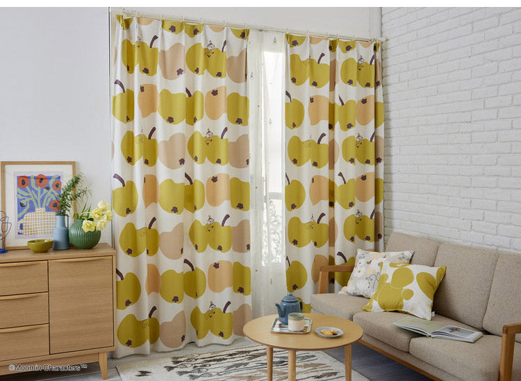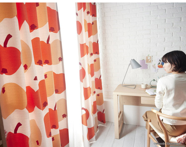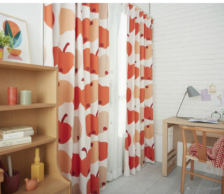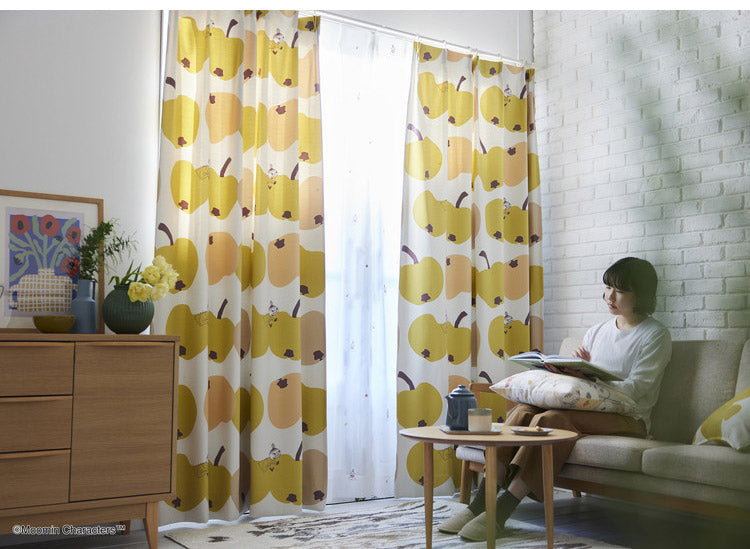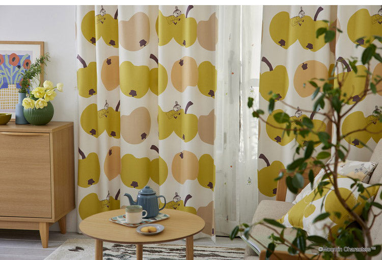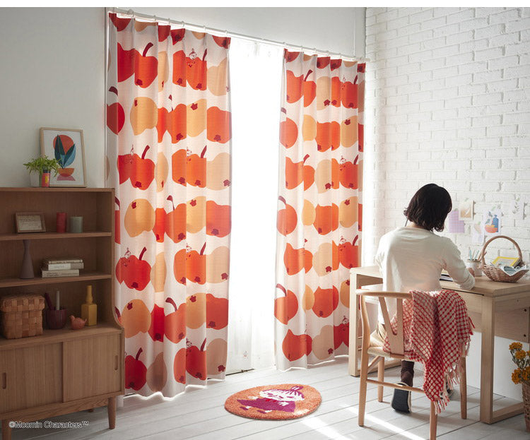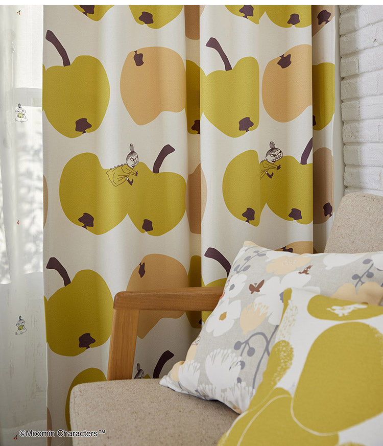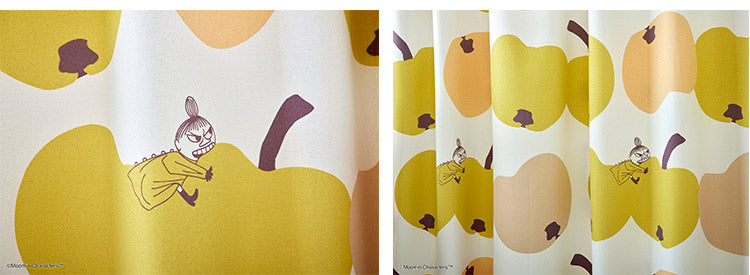 リンゴにかぶりつくリトルミイが可愛らしいデザインのカーテンです。