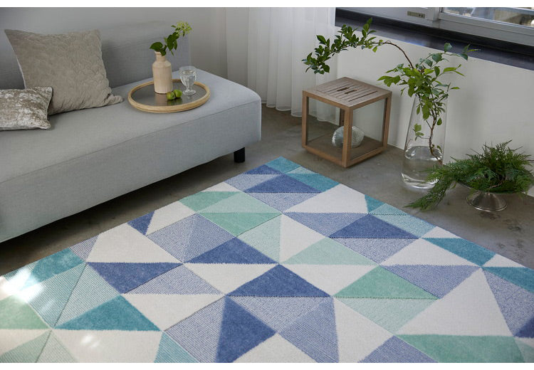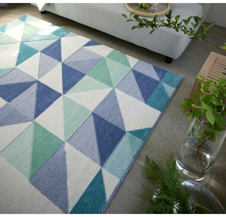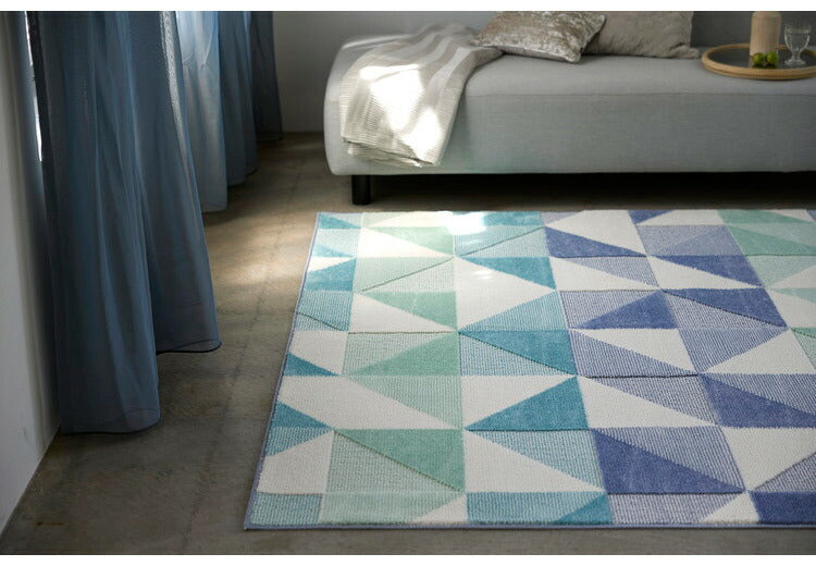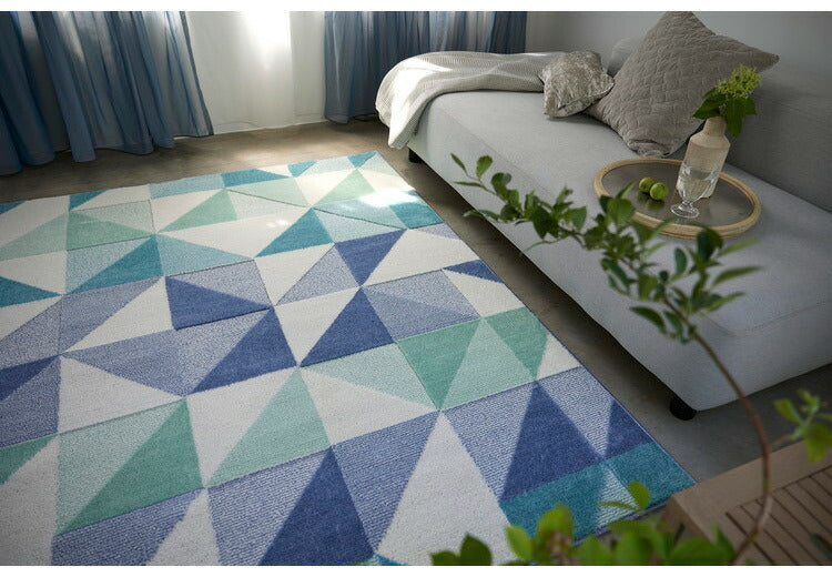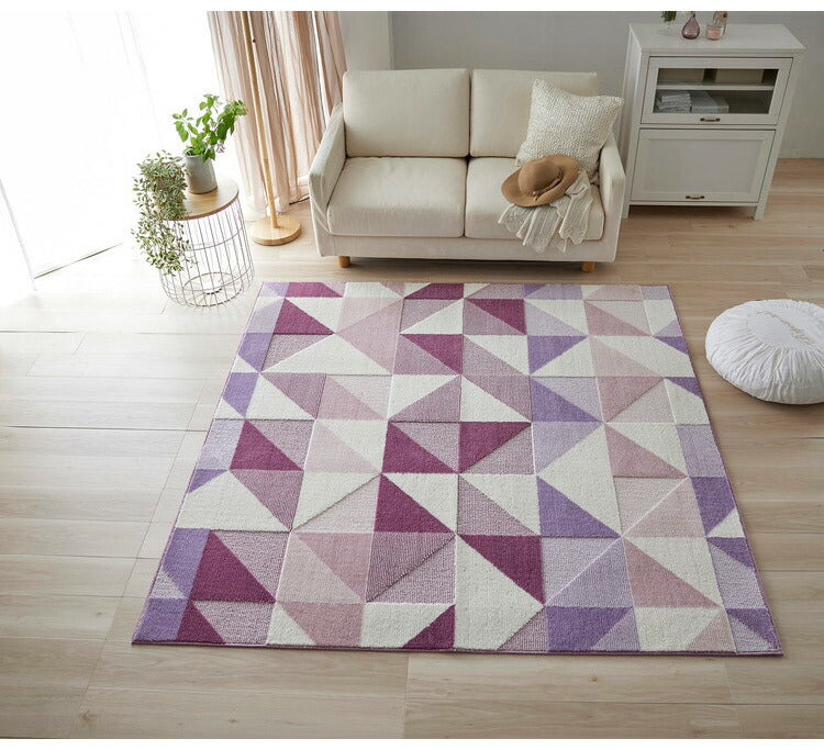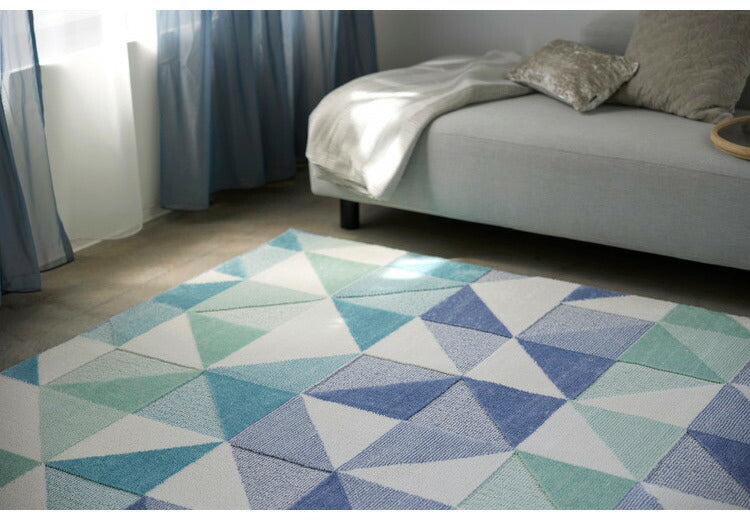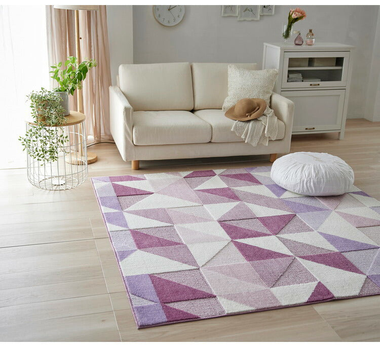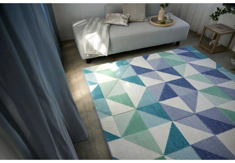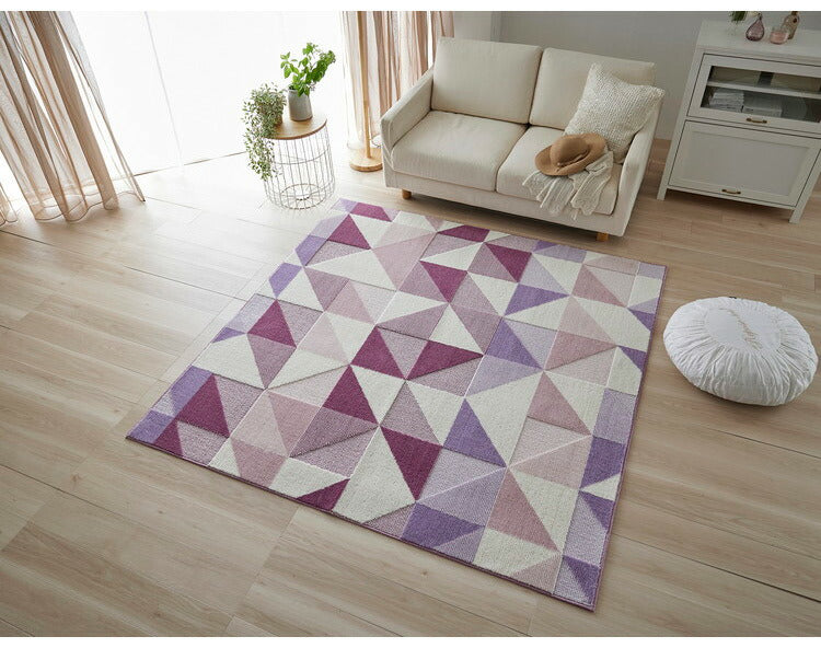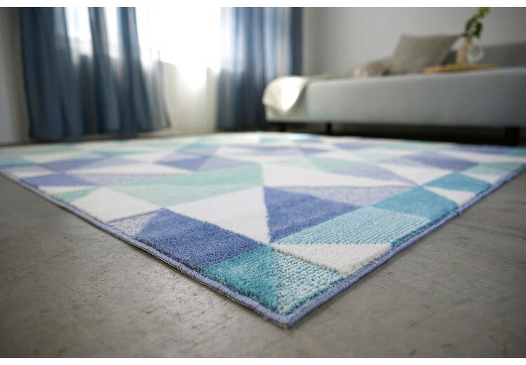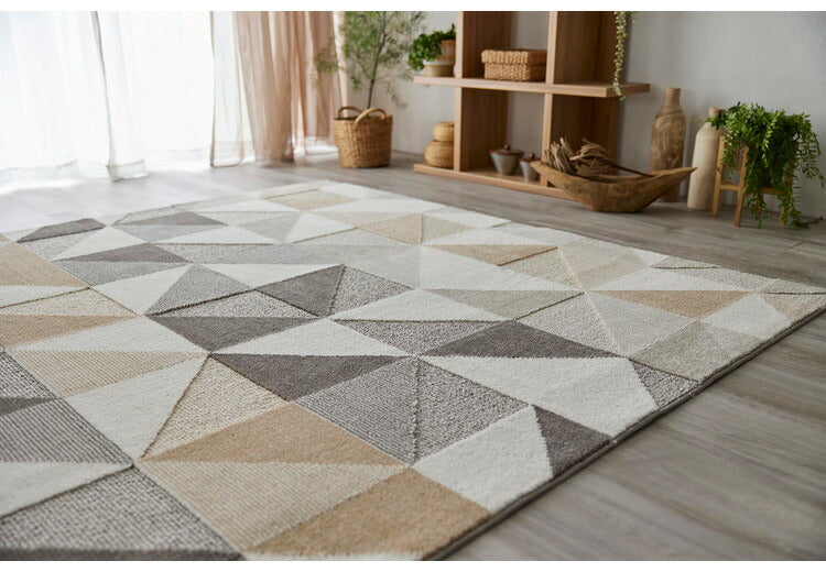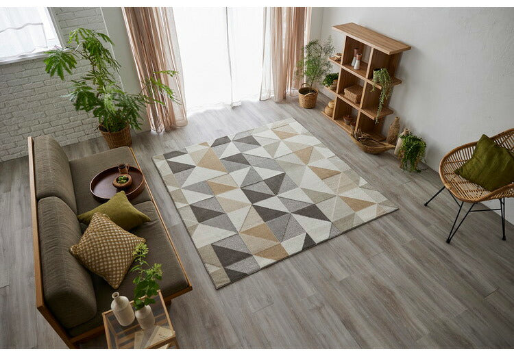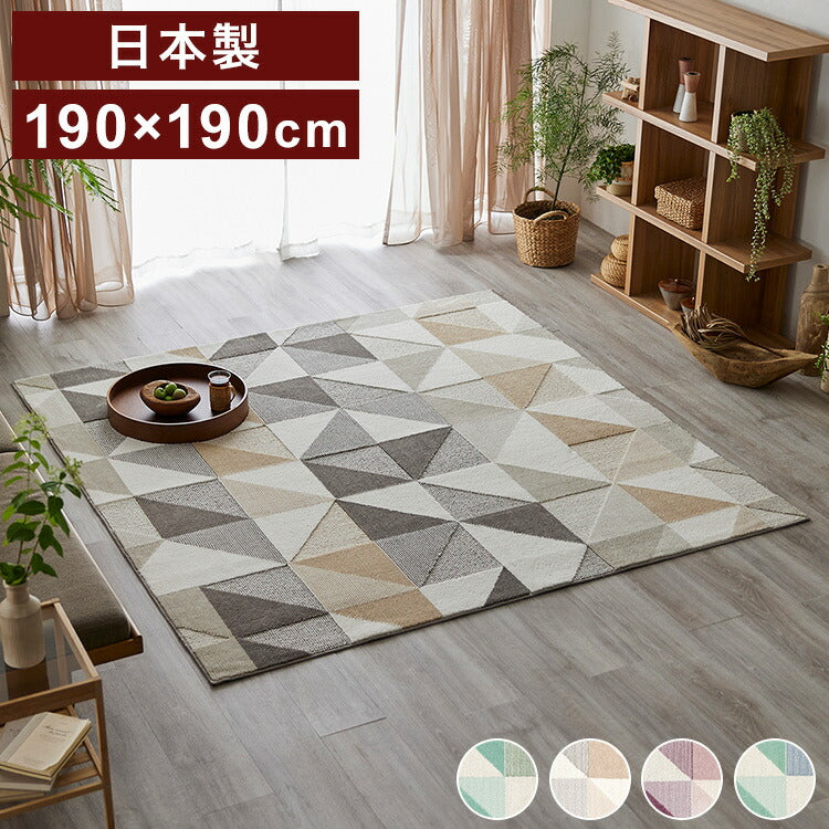 日本製 ラグ 190×190cm 防ダニ 滑り止め シーン 幾何学模様 リサイクルポリ素材使用 タフトラグ ベージュ ブルー グリーン パープル 国産 スミノエ Suminoe 北欧(代引不可)