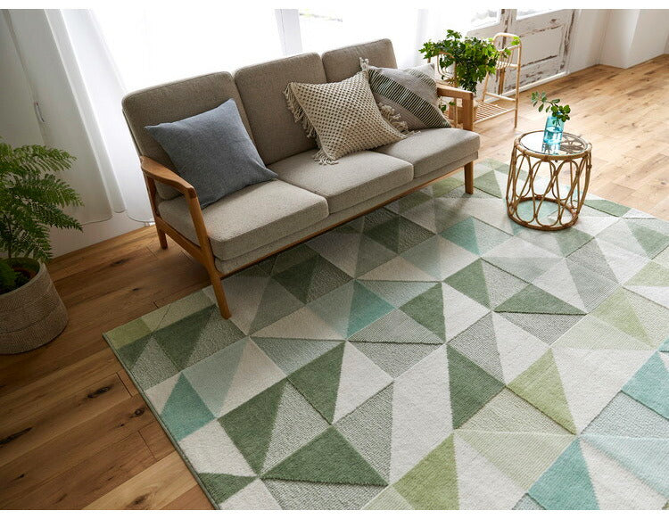 日本製 ラグ 190×240cm 防ダニ 滑り止め シーン 幾何学模様 リサイクルポリ素材使用 タフトラグ ベージュ ブルー グリーン パープル 国産 スミノエ Suminoe 北欧(代引不可)